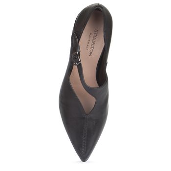Туфли из гладкой перчаточной кожи в стиле Mary Jane дополнят образ на каждый день – и подойдут для особых случаев. Фигурный вырез в подъемной части и ремешок с изящной пряжкой придают классической паре особый шарм. Внутри туфли полностью отделаны мягкой кожей. Верх модели скроен из двух деталей, соединенных крупным швом с ручной закрепкой. Легкая подошва из тунита декорирована цветочным рисунком, выполняющим роль протектора и улучшающим сцепление. Деталь устойчивый расклешенный каблук.