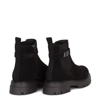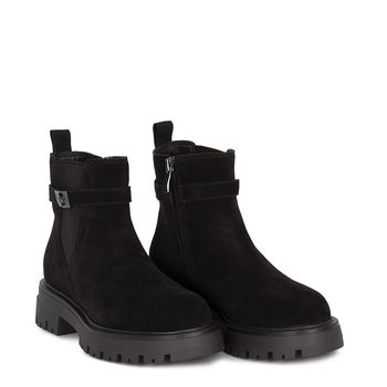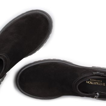 Монохромные замшевые челси очень практичны – прежде всего, благодаря массивной резиновой подошве с глубоким протектором и уютной подкладке из микрофибры. Стелька выполнена из экокожи. Боковая эластичная вставка – для оптимальной посадки по голеностопу. Модель оформлена ремешком и декоративной пряжкой из металла. Деталь в пяточной зоне петля для удобного надевания.